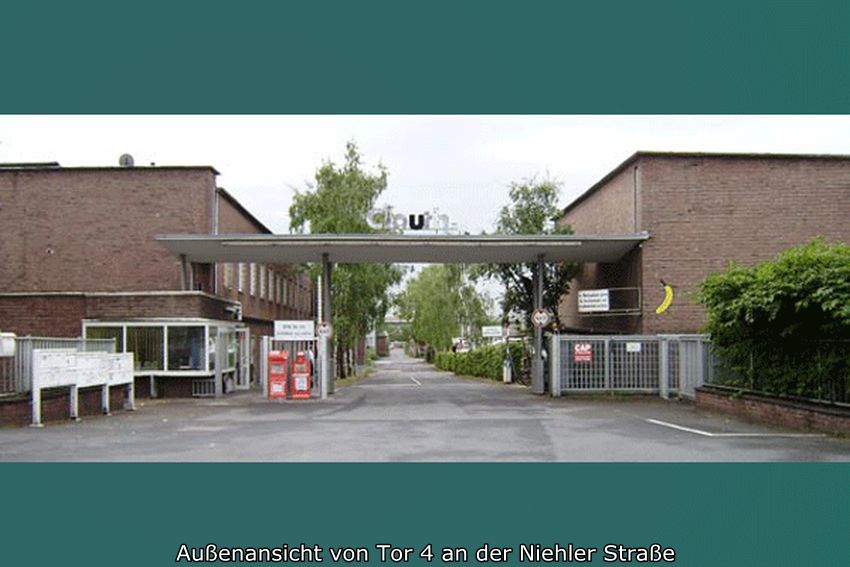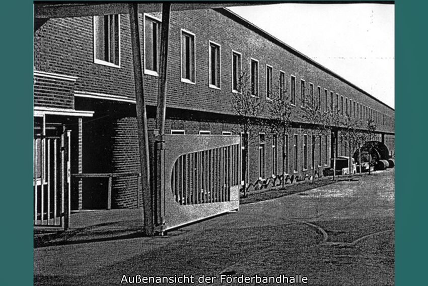 Der Sozialbau an der Xantener Straße mit großem Speisesaal, Werksküche, Garderoben und Toiletten wurde erst 1967-70 angefügt. Der Speisesaal bot im Obergeschoß 500 Sitzplätze an Tischen und wurde auch für Feste und Versammlungen z. B. in der Karnevalszeit genutzt.