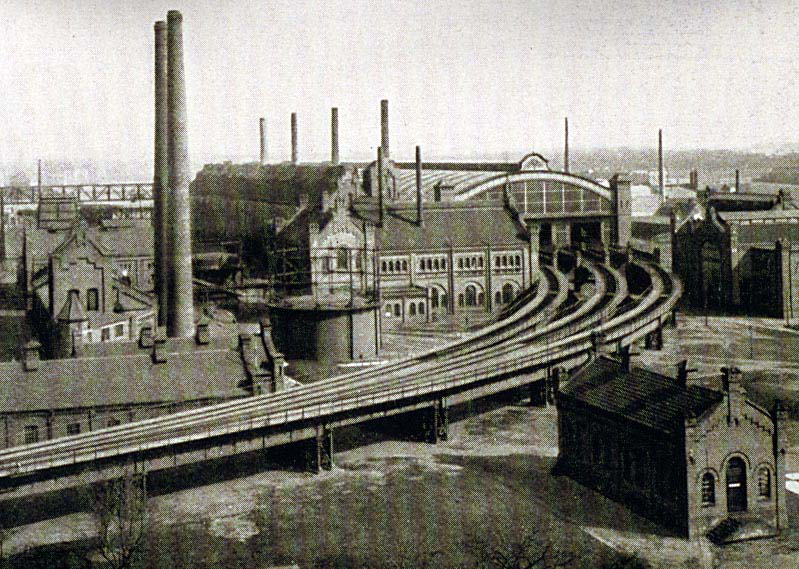 Neues Ofenhaus für die Dessauer Öfen mit den darauf zuführenden Bahngleisen.