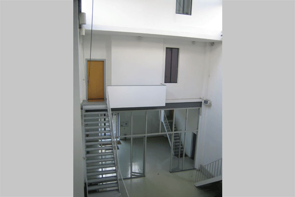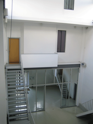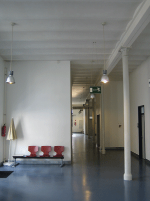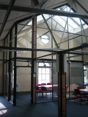 einst offene, hallenartige Innere dieses Baus wurde in verschiedene, um einen von Galerien durchzogene Mittelzone gruppierte Arbeitsräume unterteilt.