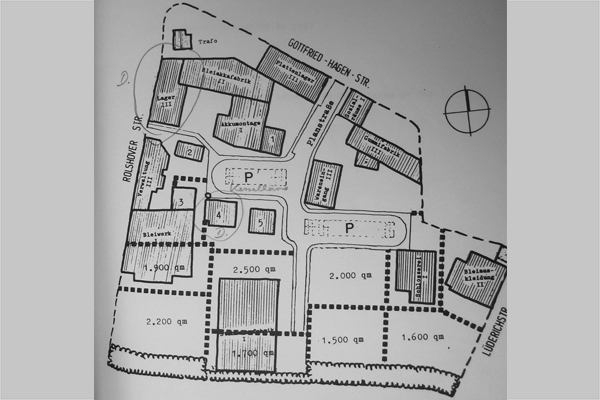 1987 – Die LEG (Landesentwicklungs-Gesellschaft) erwirbt das Gelände mit 46 Gebäuden und 53 Mietverträgen.