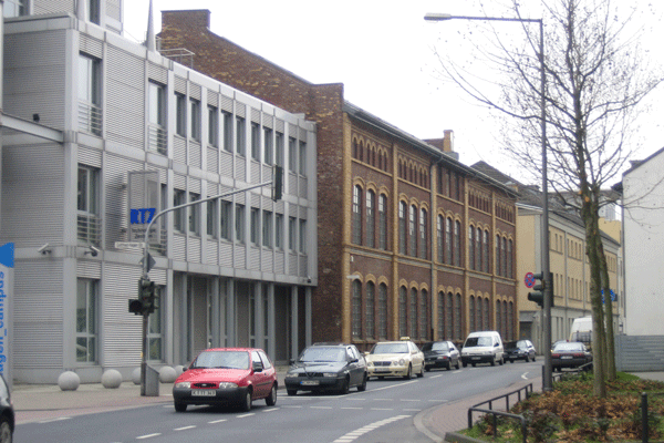 Unmittelbar an der Rolshover Straße steht der um 1890 entstandene, dreigeschossige Werkstattbau, dessen Außenfassade durch Wechsel von rotem und gelbem