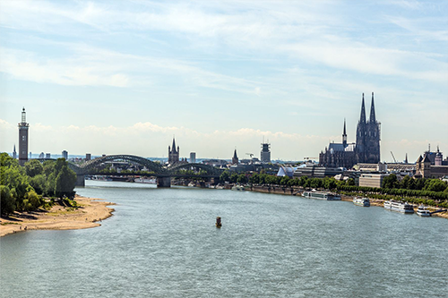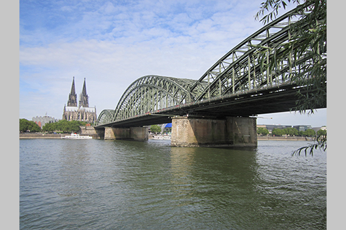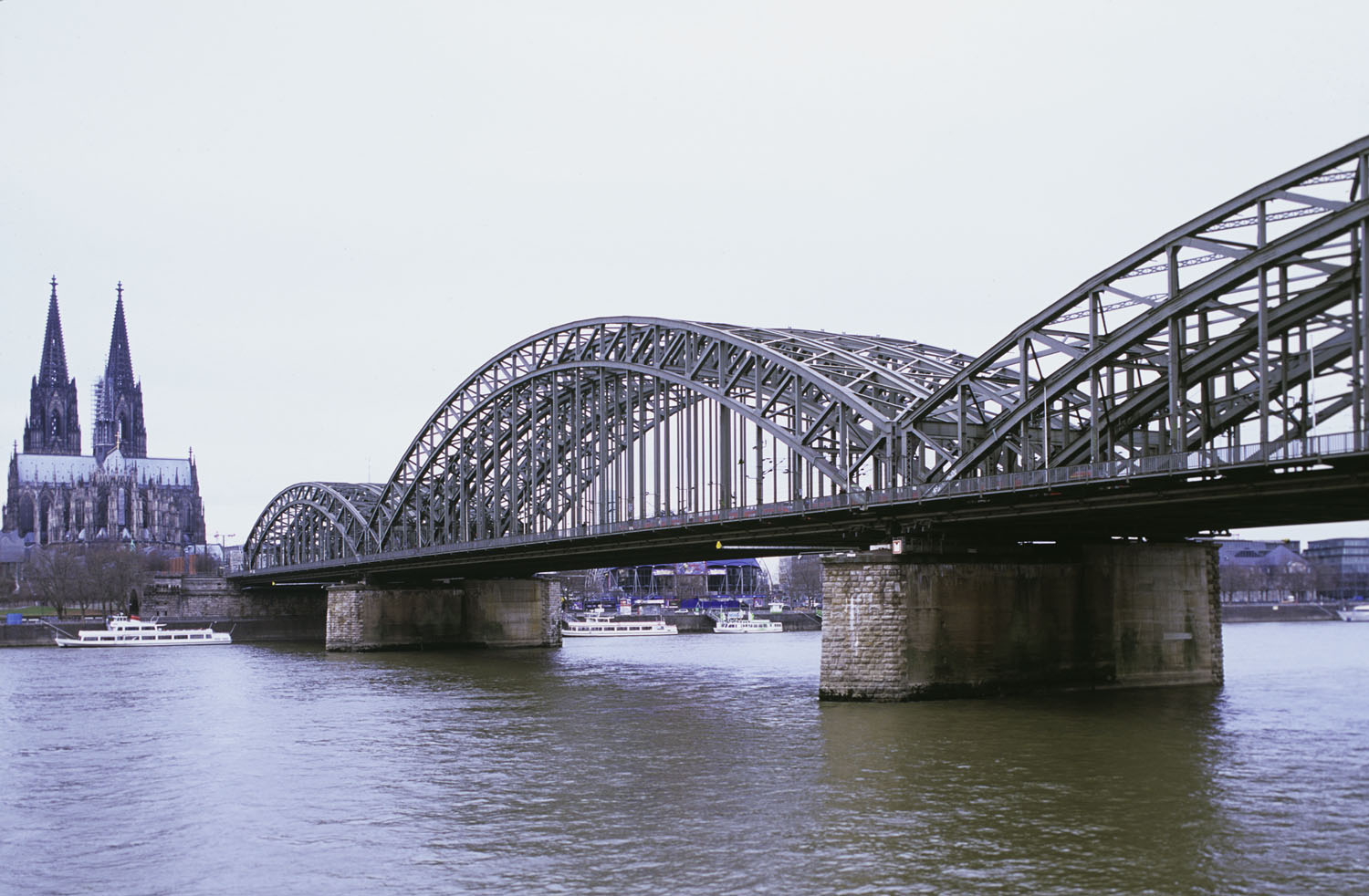 Hohenzollernbrücke von Osten mit axialer Ausrichtung auf den Dom. Foto: Gregori, Euskirchen