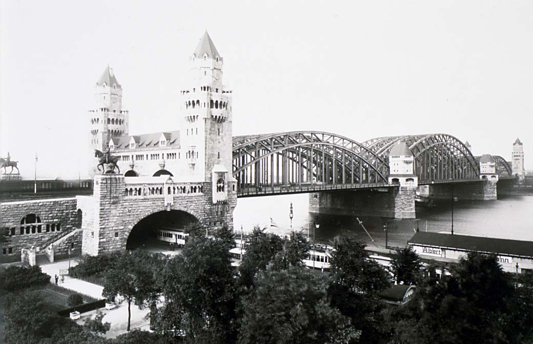 Der ästhetische Gedanke dieser Zeit und der gestalterische Wille Kaiser Wilhelms II. forderten eine architektonische Ausschmückung des Ingenieurbauwerks. So war das Erscheinungsbild der Hohenzollernbrücke bis zum zweiten Weltkrieg ein anderes als heute. Hohe Portalbauten mit reichen Verzierungen vermittelten einen robusten und wehrhaften Charakter.