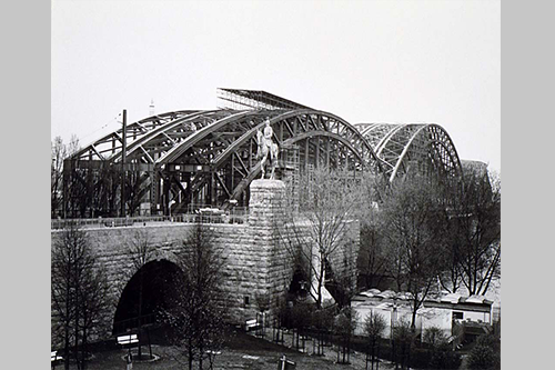 vier original erhaltenen Reiterstandbilder von deutschen Königen und Kaisern der Hohenzollerndynastie bewundern. Diese stehen jeweils rechts und links an den Auflagern der Brücke. Neben Friedrich III., Wilhelm I. und Friedrich Wilhelm IV., steht auf der linksrheinischen Seite, direkt neben dem Museum Ludwig, Wilhelm II. Er förderte den Bau der Brücke und war als begeisterter Architekturfreund maßgeblich an deren Gestaltung beteiligt.