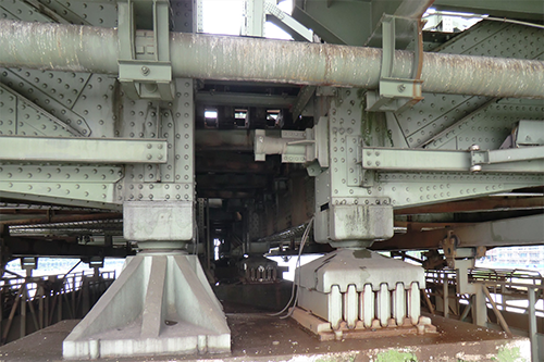 Im Zuge der Sanierungsarbeiten wurden einige alte Teile der Brücke durch neue ersetzt. Das Hauptproblem war die stark vorangeschrittene Korrosion der alten Fahrbahnträger. Die Rippenspurplatten waren sehr stark verrostet und mussten komplett ausgetauscht werden und die Schweißnähte der Grundplatte ausgebessert. Hier sei angemerkt, dass die Rippenspurplatten zu den Trägern 5 und 6 gehören, also nicht zu den originalen Überbauten von 1911. Die Bogen waren weniger von Rost und Schäden befallen.