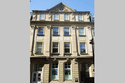 war auch für den Neubau ausschlaggebend. Die Hauptfassade des dreistöckigen Baus wendet sich dem Gülichplatz zu; die angerundete Ecke zu Unter Goldschmied