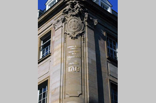 reich skulptierten Konsolen. Mehr plastischer Schmuck hat sich in dem vierachsigen Zwerchhaus erhalten, das in das Mansarddach einschneidet.