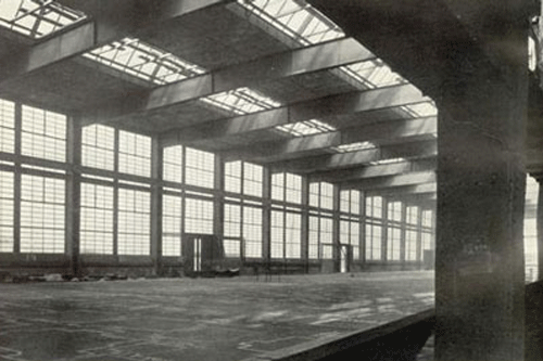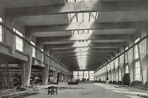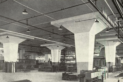 Produktionshalle mit Pilzstützen. Foto um 1930