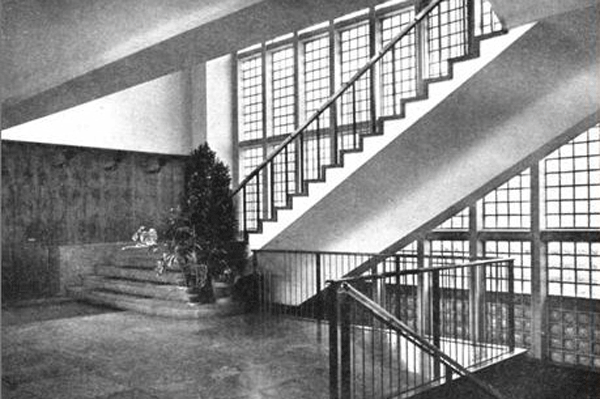 Der Verwaltungstrakt ist teilweise im Stil der 50er Jahre überformt. Die Glasbausteinwand zwischen dem Bürotreppenhaus und der Produktionshalle sowie die