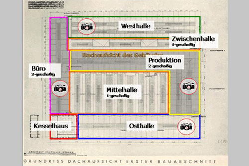 Umbauten wie zum Beispiel das Einziehen einer Geschossdecke in die Osthalle, für Büroflächen und Schulungsräume, haben nicht weitreichend in die ursprüngliche