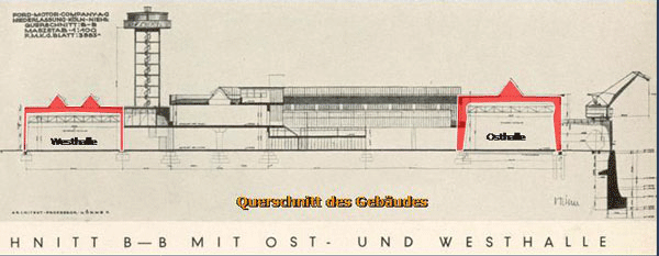 Osthalle in Stahlbeton, Westhalle in Stahlkonstruktion.