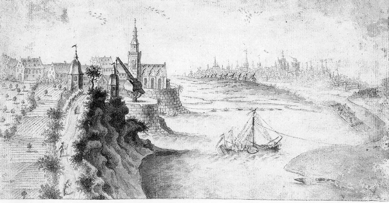 Obwohl direkt am Rhein gelegen, beginnt die in baulichen Zeugnissen darstellbare Geschichte des Mülheimer Hafens erst im 18. Jahrhundert mit der Ausweisung protestantischer Kaufleute aus Köln, deren Ansiedlung in Mülheim 1714 und dem Bau eines Rheinkrans mit großem Stapelhaus durch Heinrich von Außem 1716. Wie schon in den vorauf gegangenen Jahrhunderten, so hatte auch jetzt dieser Ansatz zur Hafenbildung gegen den Widerstand Kölns keine Chance. Köln behauptete vehement sein Stapelrecht und bewirkte 1725 den Abbruch des Mülheimer Krans. Immerhin war durch den Kran im Norden der Stadt Mülheim an der späteren Krahnenstraße ein Ansatz geschaffen worden, der 1776 zum Bau eines zweiten Krans an dieser Stelle führte. Dieser durch den Erben von Außems, dem Kaufmann van Hees erbaute und nach ihm benannte Kran konnte sich behaupten und zierte über Jahrzehnte hinweg die mehrfach in Bildern fest gehaltene nördliche Stadtansicht von Mülheim.