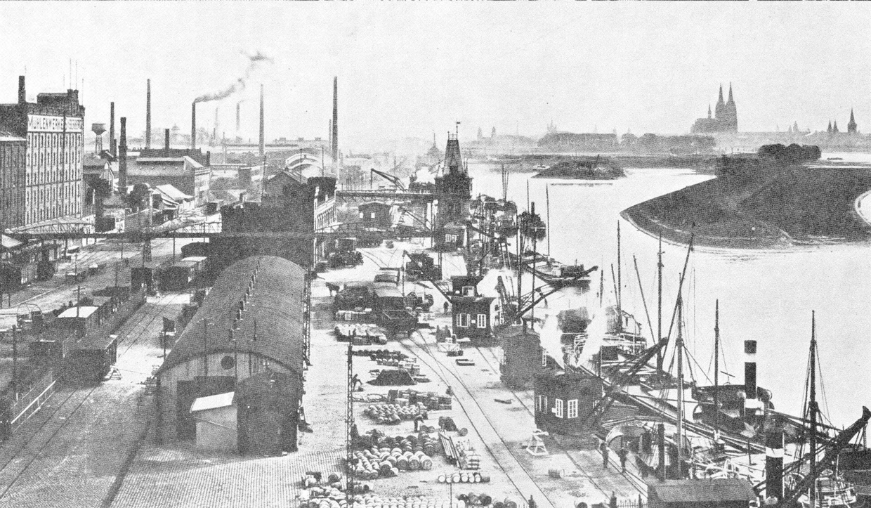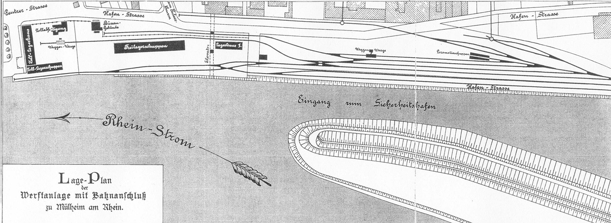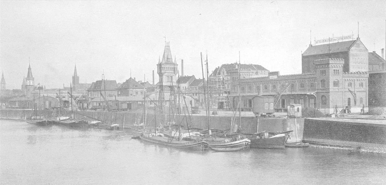 Wie schon in den 1870er Jahren wurde parallel auch der Nordhafen entwickelt und nun, nach Ankauf durch Felten & Guilleaume 1896-99 als Werkshafen mit zwei Dampfkranen, Ladevorrichtung und Lagerräumen ausgebaut.