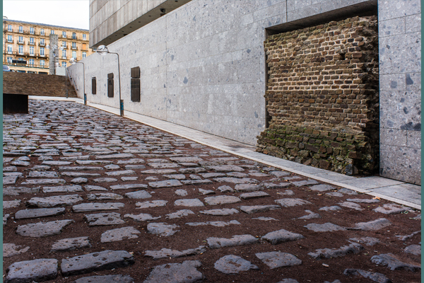 Zum nördlichen Rheintor (Tor 53) führte eine 1969|70 aufgedeckte und untersuchte Straße von 65 Metern Länge. Die fünf Meter breite Straße war mit großformatigen Basaltlavablöcken gepflastert.