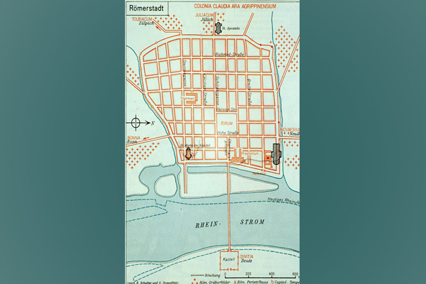 Die Colonia Claudia Ara Agrippinensium (CCAA), jene römische Stadt, aus der das heutige Köln entstand, wurde 50 n. Chr. unter Kaiser Claudius gegründet. Es war die Hauptstadt der römischen Provinz Germania inferior (Niedergermanien).
