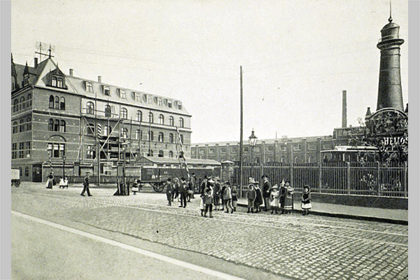 Überragt von einem leibhaftigen Leuchtturm tief im Binnenland ist die Bautengruppe der Helios-Werke in Köln-Ehrenfeld weit über Köln und das Rheinland hinaus ein Kuriosum. Dieser zur Werkserweiterung von 1894 gehörende Backsteinturm war nicht nur Werbemittel für die bei Helios hergestellten elektrischen Leuchtfeuer sondern diente auch praktischen Versuchszwecken mit seinen weit über Ehrenfeld hinaus sicher bis ins Kölner Umland wahrnehmbaren Strahlen. Sein Werbeeffekt dürfte direkt an der internationalen Eisenbahnstrecke Köln-Aachen beträchtlich gewesen sein und verweist erneut auf die allgemein schon im 19. Jahrhundert stark verbreitete Werbefunktion von Industriebauten.