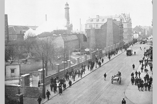 Die in den 1870er Jahren in der zeitweise selbständigen Industriestadt Ehrenfeld gegründete Fabrik für Elektrizitätsanlagen "Helios" gehörte am Jahrhundertende zu den experimentierfreudigsten Unternehmen dieser Art. Schon 1904 erlag "Der Helios" der Konkurrenz der Berliner elektrotechnischer Firmen. Man baute die ersten Wechselstromgeneratoren, Antriebe für elektrische Straßenbahnen und Leuchtfeuer. Als Symbol und zur Vorführung dieses Produktes errichtete man um 1895 einen Leuchtturm. Der Schaft trägt eine auf Konsolen auskragende Plattform, auf der sich bis zum Zweiten Weltkrieg ein "Versuchsleuchtfeuer" befand; 1996 wurde der Glaspavillon des Turms rekonstruiert. Neben dem markanten Leuchtturm sind vom "Helios", die riesige Werkshalle (1882), die heute verschiedenen Händlern als Ladenlokal dient, und das Verwaltungsgebäude mit einer eindrucksvollen Eisentreppe erhalten. (Alexander Kierdorf)