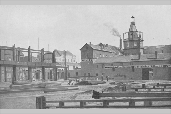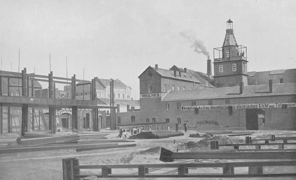 Industriehistorisch weitaus bedeutender allerdings als der Leuchtturm sind die bei Helios in der direkt unter dem Leuchtturm sich erstreckende Montagehalle gefertigten Kraftwerksausstattungen und elektrotechnischen Geräte, Motoren und elektrotechnische Geräte aller Art. Montagehalle, Verwaltung, Kraftwerk und Werksmauer zur Heliosstraße gehören zur Werkserweiterung von 1894/95, als sich Helios anschickte, ein Großunternehmen der Stromindustrie zu werden.