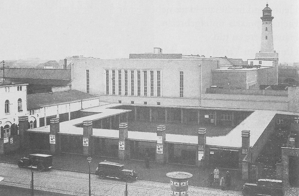 Die ehemalige Helios-Montagehalle erhielt mit dem Umbau zur Sporthalle erstmals eine gestaltete Südfront mit einer zeitgenössischen Fassade der 1920er Jahre und einem vorgelagerten, säulenumstandenen Atrium. Unter den Säulengängen waren Kassenhäuschen, Läden und Ausstellungsräume untergebracht.