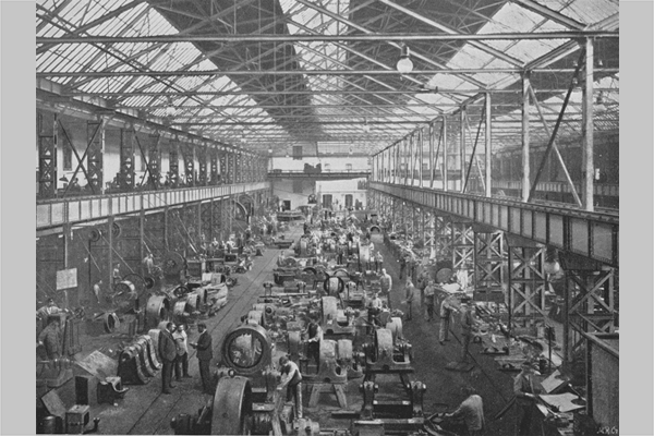 In den Darstellungen und Reflexionen zur Geschichte der industriellen Entwicklung des 18., 19. und frühen 20. Jahrhunderts werden häufig wenigstens zwei fundamentale Phasen unterschieden. War für die Erste industrielle Revolution die Dampfmaschine das prägende und geradezu konstitutive Element, übernahm diese Rolle in der Zweiten industriellen Revolution der Elektromotor und die Technik zur Stromerzeugung. Mit den zu dieser Zeit kennzeichnenderweise „Elektrische Zentralen“ genannten Kraftwerken wurde die Energie zentral erzeugt und über entsprechende Verteilernetzte an die Verbraucher abgegeben. Der Charakter der Fabrikproduktion änderte sich mit der neuen Energie grundlegend. Die direkte Kopplung von Krafterzeugung durch die Dampfmaschine und den Arbeitsmaschinen vermittelt durch eine zuweilen beeindruckende aber auch durch Kraftverluste gekennzeichnete Mechanik mit Transmissionswellen, Antriebsrädern und Riemen ließ sich ersetzen durch eine auch größere räumliche Distanz zwischen Energieerzeugung und Verbrauch. Zu hoher Blüte konnte diese Technik erst mit Einführung und Verbreitung von Wechsel- und Drehstrom werden. Große Kraftwerke entstanden „auf der Kohle“ um unmittelbar am Ort der Gewinnung den Kraftstoff in Strom umsetzen zu können. Es ist leichter, Strom über Draht, als Kohle über Straße und Schiene zu transportieren. Die großen Braunkohlekraftwerke wie Goldenberg in Hürth und Fortuna in Bergheim-Niederaußem in Westdeutschland waren die Folge dieser Überlegung. Kraftwerksausstattungen und Elektromotoren wurden Grundelemente einer neuen Zeit.
