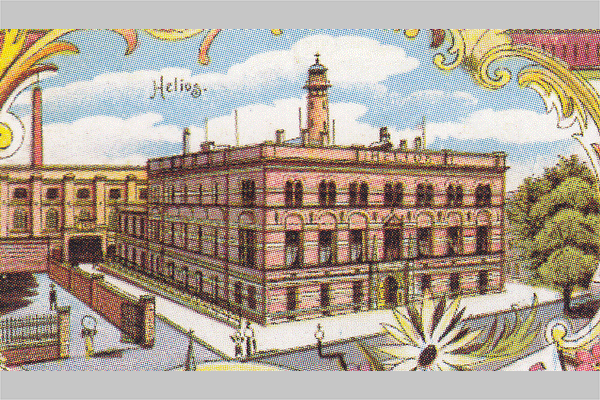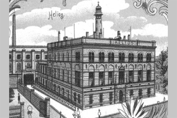 Gegründet wurde das Unternehmen 1882 als „Gesellschaft für electrisches Licht und Telegraphenbau B. Berghausen & Cie. in der Kölner Altstadt an der Glockengasse 9. Produziert wurden laut Adressbuch „Glühlicher und Bogenlichter, Electrische Signal- und Sicherheitsapparate, Telegraphen-Apparate, Haustelegraphen, Fernsprecheinrichtungen, Electrische Uhren“. Wie so viele andere dort in der Altstadt entstandene Firmen, musste auch diese „Commanditgesellschaft“ zur Expansion in einen der vor den Stadtmauern von Köln sich zu diesen Zeit kräftig entwickelnden Vororten wechseln. Zugleich erfolgte 1884 die Umgründung des Unternehmens in eine Aktiengesellschaft, nun benannt nach Helios, dem mit diesem Namen im antiken Griechenland verehrten Gott des Lichts. Unter dem technischen Direktor Carl Theodor Coerper entstand an der Venloer Straße in unmittelbarer Nachbarschaft der Anilinfabrik Weiler von 1861 eine noch bescheidene Werksanlage, die anfangs mit 120, später 180 Arbeitern(1886/87) nicht einmal an die Größe einer mittelgroßen Maschinenfabrik(250 Beschäftigte) der damaligen Zeit heranreichte. Bis 1992 erhöhte sich die Beschäftigtenzahl immerhin auf 400 Mitarbeiter.