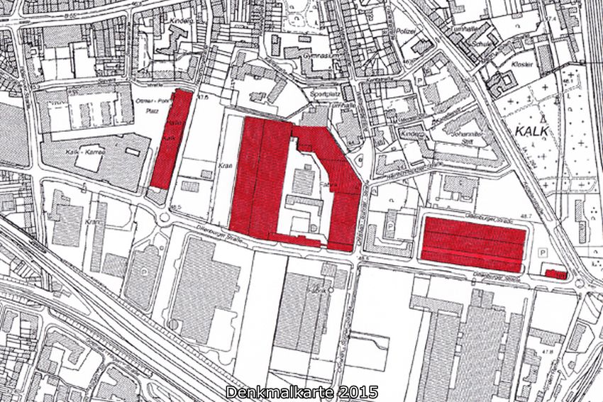 Das 1003 erstmals erwähnte Kalka oder Calke (Kolk = Sumpf) war jahrhundertelang nur eine bescheidene Ansiedlung einiger weniger Bauernhöfe auf einer Bodenerhebung etwa dort, wo etwas abseits der alten Ost-West Fernstraße (heute Kalker Hauptstraße) später die Kath. Pfarrkirche St. Josef erbaut wurde. Auch ein 1423 im Anschluss an eine pestartig wütende Epidemie aufgestelltes Marienbild mit nachfolgender und besonders nach einem Kapellenbau 1666/67 belebten Wallfahrt konnte eine bauliche Entwicklung des Ortes nicht begründen. 1815 zählte Kalk 59 Einwohner und selbst zur Mitte des 19. Jahrhunderts hatte der Ort 1856 erst 968 Einwohner. In diesen Jahren um 1850 jedoch gab es nach der Gründung von Ziegeleien die ersten industriellen Ansiedlungen und die Einbeziehung von Kalk zusammen mit Poll und Vingst in eine Landbürgermeisterei Deutz.