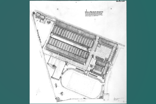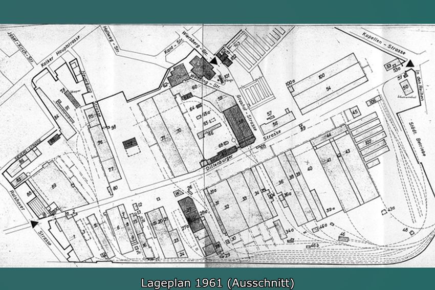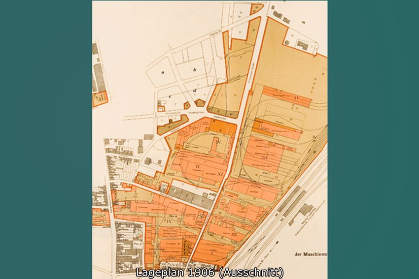 Fester Bestandteil der Firmenüberlieferung sind die bescheidenen baulichen Anfänge in einem Brettergebäude für das Kontor und Holzfachwerkbauten auf dem anschließenden, tief von der Kalker Hauptstraße aus nach Süden in die Feldmark hinein auf schmalem Grundstück bis an den Vingster Kirchweg (heute Dillenburger Str.) vorangetriebenen Fabrikanlage. Den lang gestreckten, bis etwa 1863 vollständig bebauten Werkshof umsäumten mechanische Werkstatt, Schreinerei und Modellwerkstatt, Eisen- und Gelbgießerei, Schmiede sowie Maschinen- und Kesselhaus. Die erste, 3-PS starke Dampfmaschine war zwar im Gründungsjahr 1857 aufgestellt worden; zuvor aber – auch dies wird gern in den Werkschroniken nacherzählt - hatten vier Arbeiter mit Muskelkraft über ein Vorgelege für den Antrieb der Arbeitsmaschinen gesorgt. Kernstück der Anlage war die so genannte Perforieranstalt, eine Werkstatt zur Herstellung gelochter Bleche, einem der grundlegenden Halbprodukte zur Herstellung von Sieb- und Aufbereitungsanlagen. Nach den bescheidenen Anfängen im Gründungsjahr mit anfangs 16 Arbeitern, hatte das Werk 1861 mit 180 bis 200 Beschäftigten die Größenordnung einer mittleren Maschinenfabrik erreicht.