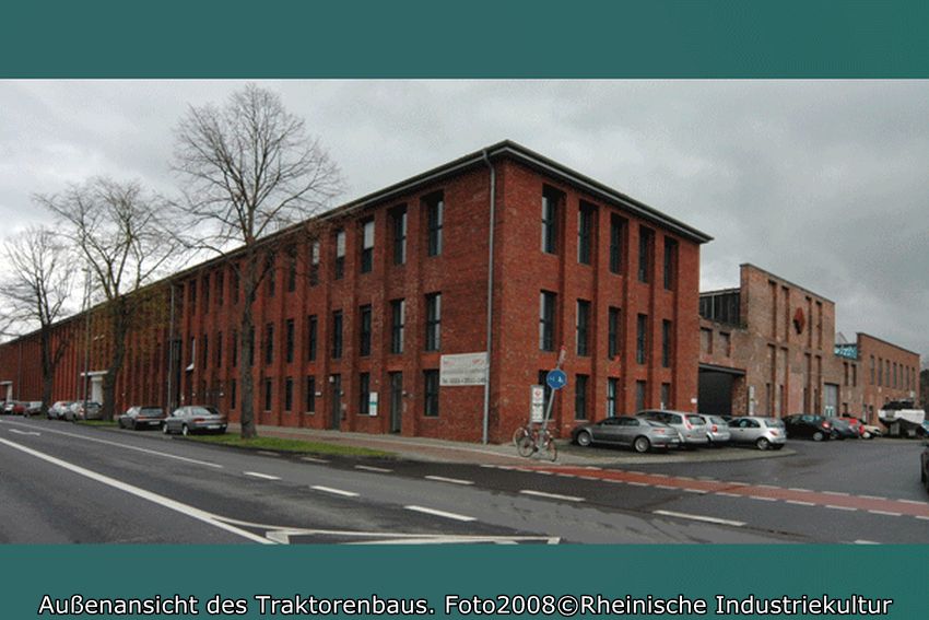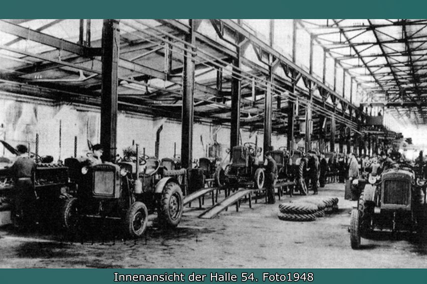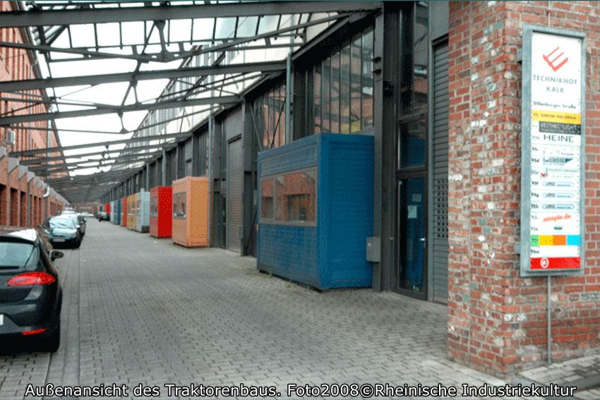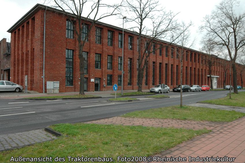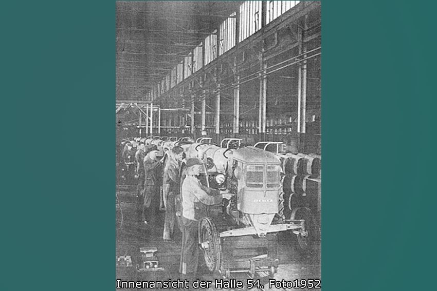 Seit 1924 wurden in Kalk Traktoren anfangs in der nicht mehr existierenden Halle 3/3a gebaut. Der Traktorenbau wurde besonders nach Aufnahme der Serienproduktion 1928 eine Erfolgsgeschichte des Unternehmens Klöckner-Humboldt-Deutz. Das Werk Kalk konnte ab 1933 von der Subventionierung der Landwirtschaft durch einen höheren Absatz an Traktoren profitieren. Der 1936 entwickelte Klein- oder Bauernschlepper stieß auf eine hohe Nachfrage. Zusammen mit dem Kleinlokomotivbau wurde der Traktorenbau in den 1930er Jahren im östlichen Werksgelände zwischen den Hallen 4 und 7 konzentriert. Die Kriegsproduktion führte zu einer ausgedehnten Industrieplanung im noch weitgehend unbebauten Ostteil des Werksgeländes. Der Leiter der Bauabteilung Macherey legte für das Gelände bis zur Kapellenstraße 1941 eine Gesamtplanung vor. Ausgehend von dem 1936/37 neu errichteten Verwaltungsbau an der Dillenburger Straße waren in diesem Entwicklungskonzept Hallen für den Bau der Flugzeugmotoren-Einspritzpumpen zusammen mit Kasino, Hallenbad und Sportplatz nördlich der Dillenburger Straße vorgesehen. Ausgeführt wurde 1941/42 der Pumpenbau (Geb. 54, 100). Nach Kriegsende wurde der kriegszerstörte Pumpenbau wiederhergerichtet und fortan für den Bau von Traktoren verwendet. 1949/50 waren in der zugehörigen 200 Meter langen Fertigungshalle schon 10.000 und in dem erweiterten Komplex bis 1955 100.000 Traktoren gebaut worden.1956 arbeiteten etwa 3500 Mann bei KHD in Kalk.