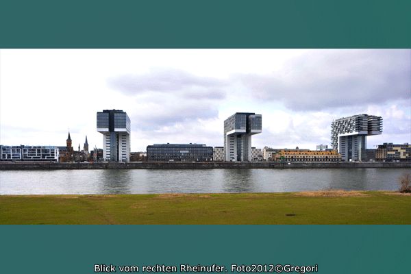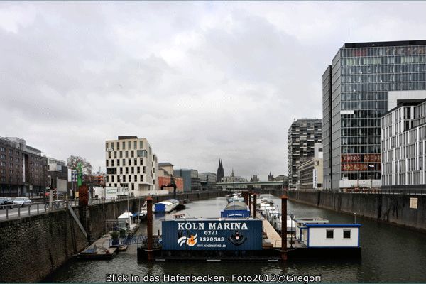 Das Preußisch-Fiskalische Hauptzollamt thronte stolz an der Spitze der Landzunge und präsentierte im Giebel den preußischen Adler. Das städtische Hafenamt war dazu als Kontrapunkt am Ende des Hafenbeckens angeordnet. Der Repräsentationsbau des Staates war in Formen der Neorenaissance, das städtische Bauwerk als neoromanischer Bau entstanden. Wie schon bei Dombrücke und Dom war so erneut der Widerspruch von preußischem Staat und rheinischem Gemeinwesen im Stadtbild monumental deutlich gemacht worden.