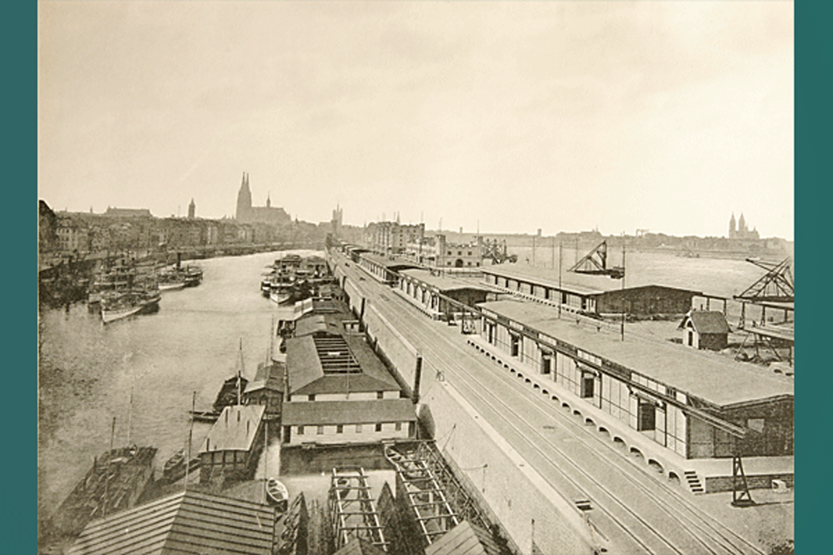 Im letzten Viertel des 19. Jahrhunderts drohte Köln besonders in Konkurrenz zu den benachbarten Rheinhäfen deutlich ins Hintertreffen zu geraten. Dem gewaltigen Ausbau der Hafenanlagen bei Ruhrort und Duisburg, bedingt durch die ungeheuren Mengen an Schüttgütern des Ruhrbergbaus und des Hüttenwesens, konnte kein anderer Binnenhafen Deutschlands folgen. Der Mannheimer Hafen als Umschlagplatz vom Rheinschiff auf die nach Süden führenden Eisenbahnlinien wuchs zum zweitgrößten Rheinhafen heran. Selbst kleinere Städte wie Mainz 1880-87 und seit 1890 Düsseldorf drohten Köln durch den Bau neuer Häfen zu überflügeln. Die Niederlegung der Kölner Stadtmauer und die Planung der Neustadt ab 1881 führten in Köln zu einer vollständigen Neuformung des Verhältnisses von Stadt und Strom.