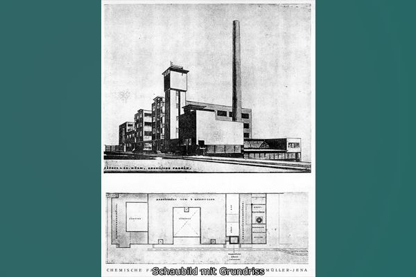 Mit der Aufgabe, die betrieblichen Zielsetzungen in eine überzeugende Architekturform umzusetzen, wurde der Architekt Otto Müller-Jena beauftragt. Müller-Jena, 1875 in Jena geboren, hatte sich 1902 als Architekt in Köln niedergelassen. In den Anfangsjahren seiner Karriere baute er repräsentative Villengebäude, deren Gestaltungssprache dem Repertoire der historischen bürgerlichen Architektur verpflichtet war. Nach erfolgreicher Etablierung als selbständiger Architekt folgten innerhalb nur weniger Jahre Großaufträge für Bauaufgaben in Handel, Produktion und Verwaltung. 1914 gab er die individuelle Tätigkeit vorerst auf und fungierte als Geschäftsführer der ‚Rodenkirchener Baugesellschaft‘. Nach dem Weltkrieg setzte er seine Entwurfs- und Bautätigkeit innerhalb des Spektrums gehobener Wohn- und Siedlungsbauten und repräsentativer Geschäftshäuser erfolgreich fort. Als großes Bauprojekt errichtete er 1920-22 das Lagerhaus der Dampfschifffahrt-Gesellschaft Neptun im Kölner Rheinauhafen. Der dreigeschossige Eisenbetonbau zeigt verputzte Rasterfassaden unter gestaffelten Dächern mit aufgesetzten Dachgeschossrisaliten. Bereits in diesem, durch seine qualitätvolle Gestaltung überzeugenden Bauwerk deutet sich der funktionale Rationalismus im zukünftigen Bauschaffen Müller-Jenas an.