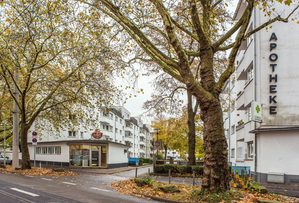 1926 erwarb die Gemeinnützige Aktiengesellschaft für Wohnungsbau (GAG) das sogenannte Kalkerfeld zwischen Buchheim und Kalk. Nach dem Blauen Hof (1926|27) entstand südlich der Heidelberger Straße von 1929 bis 1932 die Weiße Stadt, ebenfalls nach Plänen der Kölner Architekten Wilhelm Riphahn und Caspar Maria Grod. 1932 erfolgte auch die Benennung des gesamten Siedlungsgebietes als Buchforst.