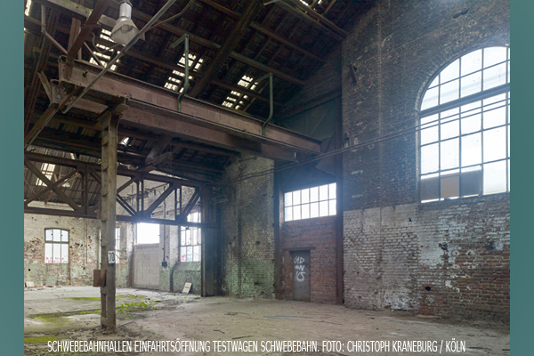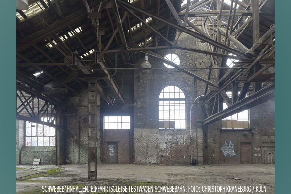 Von herausragender verkehrs- und industriegeschichtlicher Bedeutung sind die Reste der Schwebebahn-Probestrecke von 1893. Eugen Langen hatte als Direktor der benachbarten Gasmotorenfabrik Deutz seit 1892 an einer Hängehochbahn für Personenbeförderung gearbeitet. Im Januar 1893 wurde die Bahn beim kaiserlichen Patentamt in Berlin zum Patent angemeldet und zugleich auf dem Gelände der Waggonfabrik van der Zypen & Charlier eine Probebahn angelegt. Die Patente für ein- und zweischienige Ausführungen der Hängebahn wurden 1893 und 1895 erteilt. Nach Besichtigung der Versuchsstrecke in Deutz entschieden sich die Städte Barmen und Elberfeld im Dezember 1894 für den Bau einer 13,3km langen Strecke durch das Wuppertal bis nach Vohwinkel. Trotz intensiver Bemühungen die Hängebahn auch in anderen Städten (Hamburg, Berlin, Köln) zu realisieren blieben die 1898 bis 1903 ausgeführte Wuppertaler Schwebebahn neben einer kurzen Bergbahn in Dresden-Loschwitz (1898-1901 – ebenfalls nach Besichtigung der Probestrecke in Deutz) die einzigen ausgeführten Projekte. Die Hängebahn von Eugen Langen und damit auch die Probestrecke in Deutz gehören in Entwicklungsgeschichte der innerstädtischen Nahverkehrssysteme. Die Fragmente der Probestrecke sind von wissenschaftlicher, insbesondere technikhistorischer Bedeutung. Mit großer Wahrscheinlichkeit wurden die Schwebebahnwagen in der Hallengruppe, durch die die Probestrecke führte auch produziert. Da es die ersten reineisernen Waggons überhaupt waren, ist die Hallengruppe auch jener historische Ort, an dem der industriehistorisch bedeutende Wechsel vom Holz zum Eisen im Waggonbau stattfand.