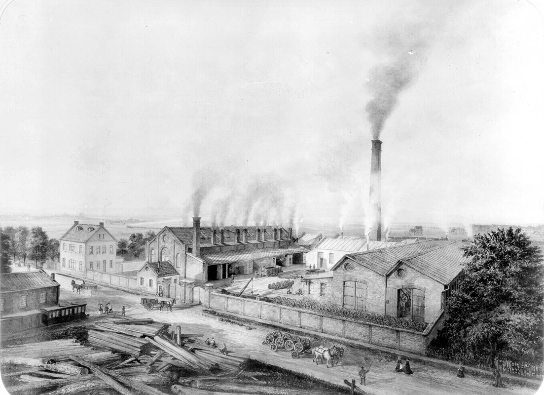 2 Die Gründungsanlage bestand aus Schmiede, Gießerei und Stellmacherei. Etwa 100 Arbeiter waren dort seit 1845 beschäftigt. Zehn Jahre später waren schon 400 Mann auf dem Werksgelände tätig und 1865 hatte das Unternehmen 600 Beschäftigte. Mit sechs Dampfmaschinen und 100 Werkzeugmaschinen wurden Güterwaggons, Drehscheiben, Brücken, Laufkräne, Weichen, Wasserversorgungseinrichtungen und Signalanlagen hergestellt. Die Eisengießerei lieferte Gussteile aller Art, auch die für Industrie- und Zweckbauten so wichtigen Gusseisenstützen. Ferdinand van der Zypen hatte aus Lüttich viele Landsleute mitgebracht. Es entstand eine frühe Arbeitersiedlung an der Julius- und Gaußstraße mit Reihen- und Vierhäusern. Van der Zypen erbaute für sich selbst auf einem großen, bis zum Rhein reichenden Gartengrundstück eine Villa mit markantem Turmbau. Von der leider nicht erhaltenen Villa zeugt noch die repräsentative Grundstückseinfriedung mit Mauerwerkspfeilern aus Naturstein und aufwändig geschmiedeten Zaun- und Toranlagen (neben der Hauptverwaltung der Gasmotoren-Fabrik Deutz, Deutz-Mülheimer-Straße 147-149).