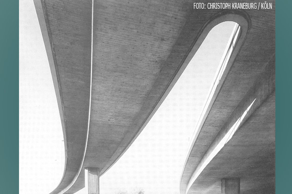 Für die schlichte, wohlproportionierte Brückenform galt die von Mies von der Rohe geprägte Ästhetik des Minimalismus: „Wir müssen alle, alle unsere Phantasie zusammennehmen, um so einfach wie möglich zu werden.“ Der hohe gestalterische Anspruch der Planer ist auch bei der rechtsrheinischen Hochstraße an den gerundeten Anschlüssen der Auffahrten, den Spindeltreppen für Fußgänger und den sorgfältig gestalteten Betonoberflächen erkennbar.(Walter Buschmann / Matthias Hennies / Alexander Kierdorf)