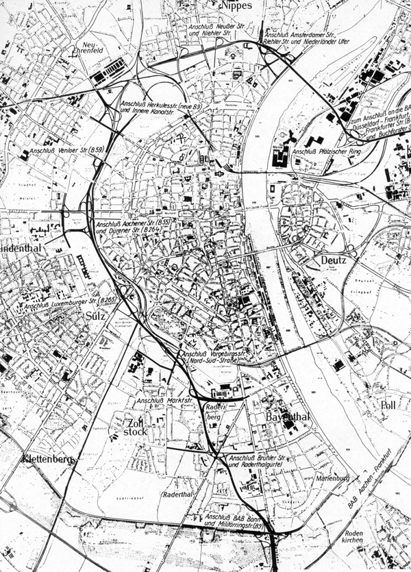Die Zoobrücke als Teil einer über den inneren Grüngürtel geführten Stadtautobahn