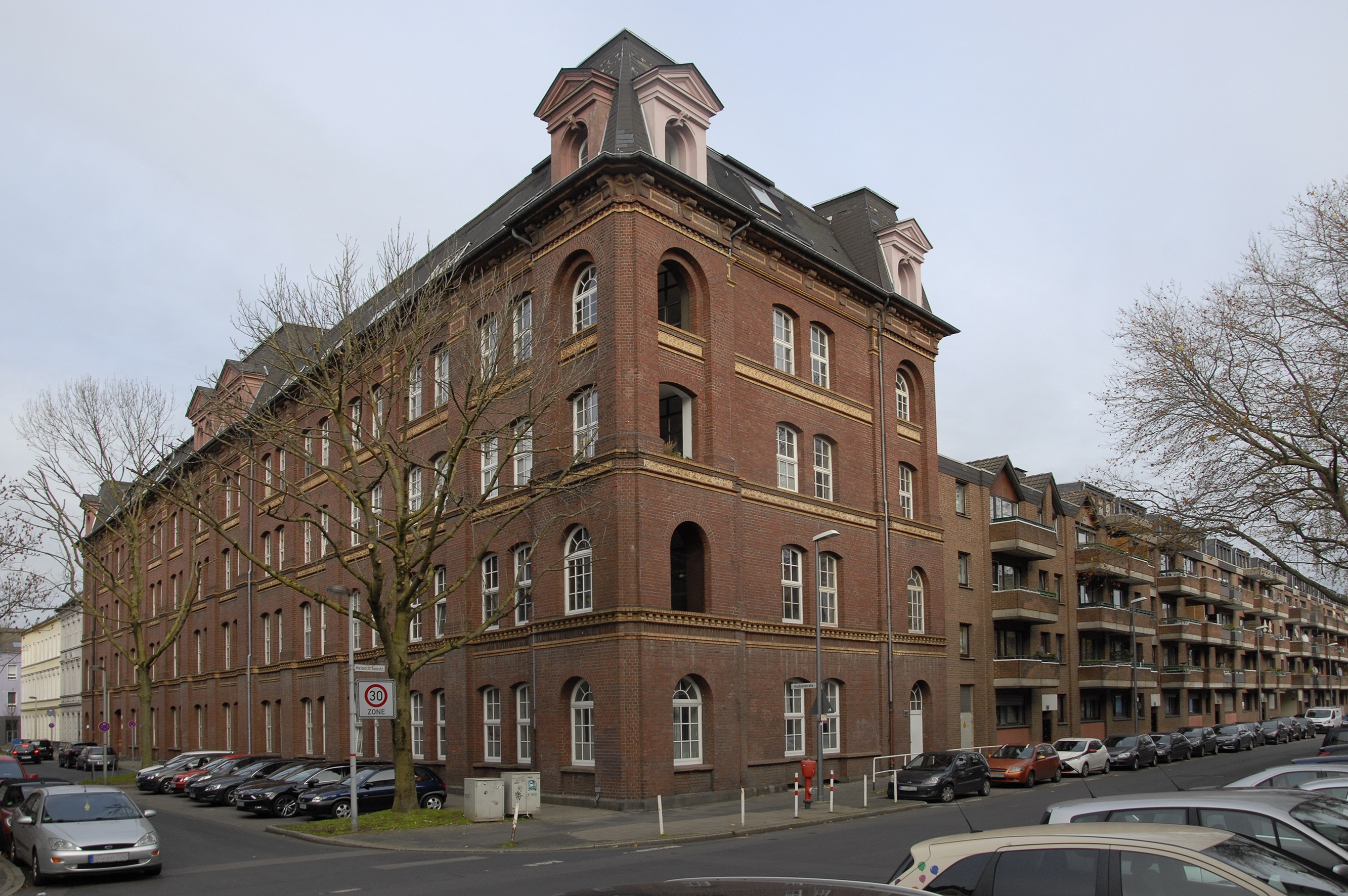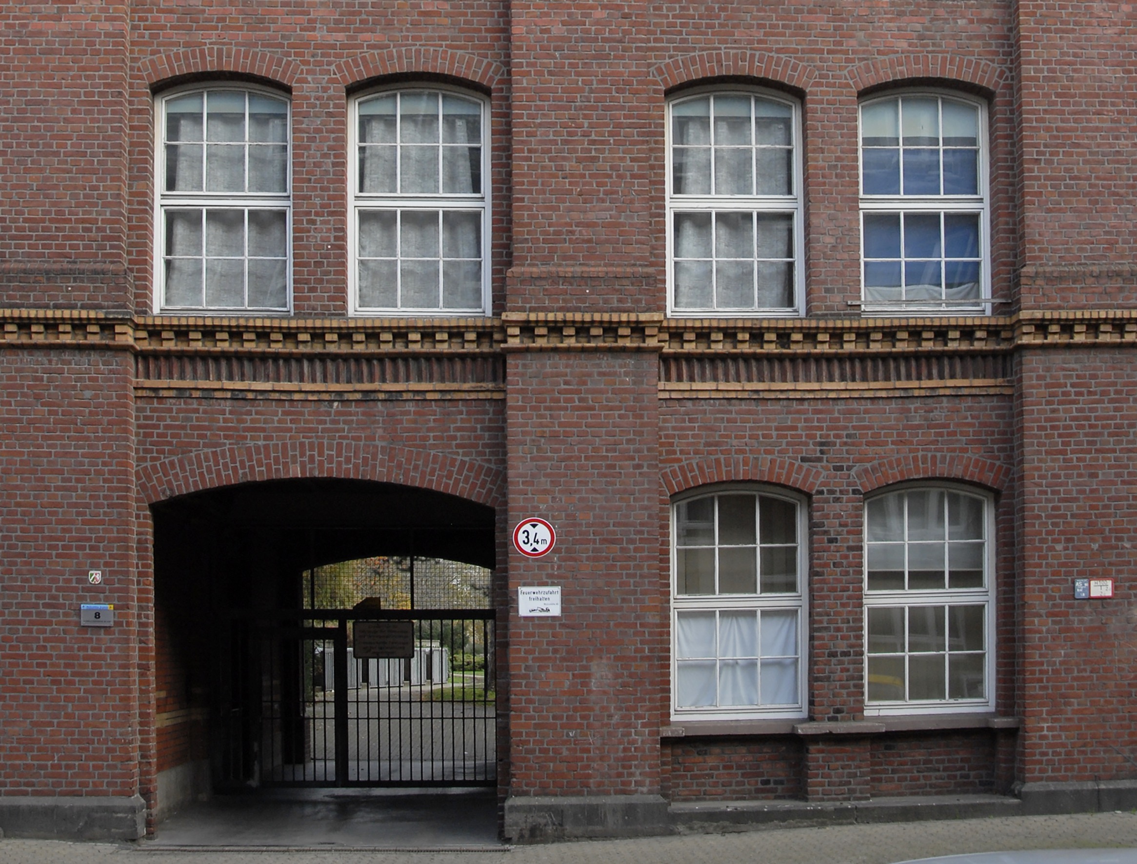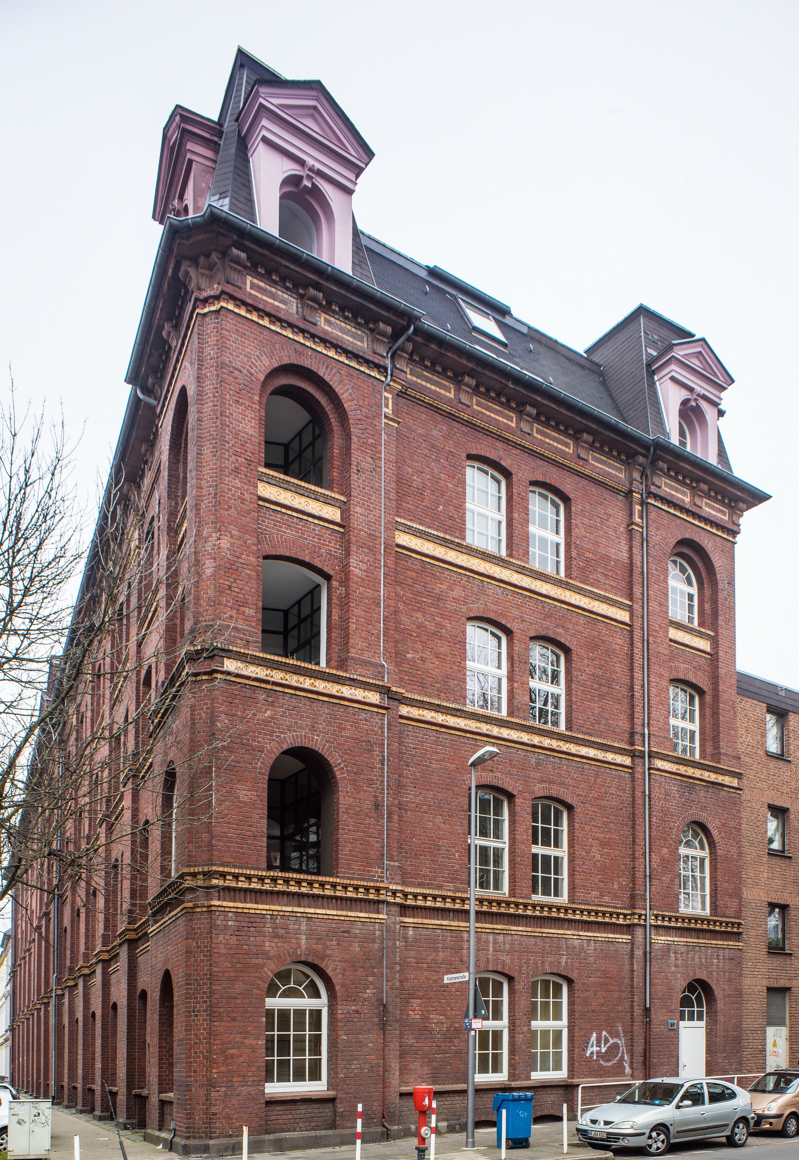 Für das expandierende Unternehmen entstand 1899 ein großer Fabrikkomplex entlang der Melanchthonstraße, der große Kopfbau orientiert sich zu der zwischen Melanchthon- und Ritterstraße verlaufenden Querstraße. Ursprünglich Annastraße benannt, erfolgte später die Umbenennung in Krahnenstraße. Das Areal liegt südlich des Krefelder Hauptbahnhofs und dessen hochliegendem Bahnkörper; im späten 19. Jahrhundert war eine Bebauung vorrangig entlang der südwärts führenden Kölner Straße entstanden. Hier war 1845 bis 48 – damals vor den sprichwörtlichen Toren der Stadt – das städtische Krankenhaus errichtet worden.
