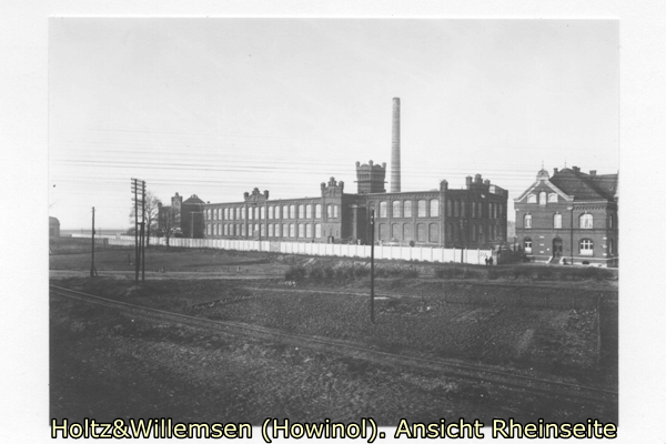 1889 gründeten die beiden aus dem Kontext der ländlichen Ölerzeugung stammenden Fabrikanten Franz Holtz und Reinhard Willemsen die Offene Handelsgesellschaft Holtz & Willemsen. Holtz entsprang einer alten Müllerfamilie, die schon im 17. Jahrhundert in Dülken die Heesemühle betrieb, 1792 die Süchelner Niersmühle erwarb und 1830 die Ölmühle Holtz & Co. gründete. Reinhard Willemsen hatte 1874 in Erweiterung seines landwirtschaftlichen Betriebes an der Straße von Straelen nach Geldern in Veert eine Ölschlägerei eingerichtet. Mit dem neu gegründeten Unternehmen war der Betrieb einer neuen Fabrik am Rhein beabsichtigt. Man folgte damit der stetig wachsenden Bedeutung zur Verarbeitung aus dem Ausland eingeführter Saaten, die günstig über den Rhein als dem bedeutendsten europäischen Wasserweg importiert werden konnten.