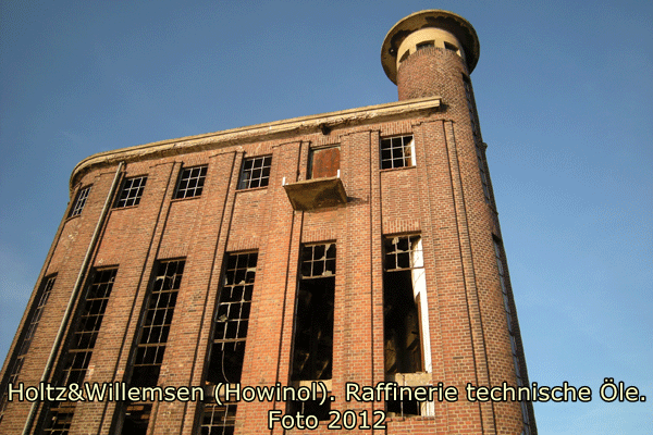 Das ehemals freistehende Gebäude für die Raffinerie technischer Öle wurde später, wohl in den 1950er Jahren ergänzt durch eine Überbauung der Tordurchfahrt. Diese Überbauung setzt die Fassadenarchitektur der 1930er Jahre fort und führt die markante Pilasterarchitektur bis an das Maschinenhaus heran.