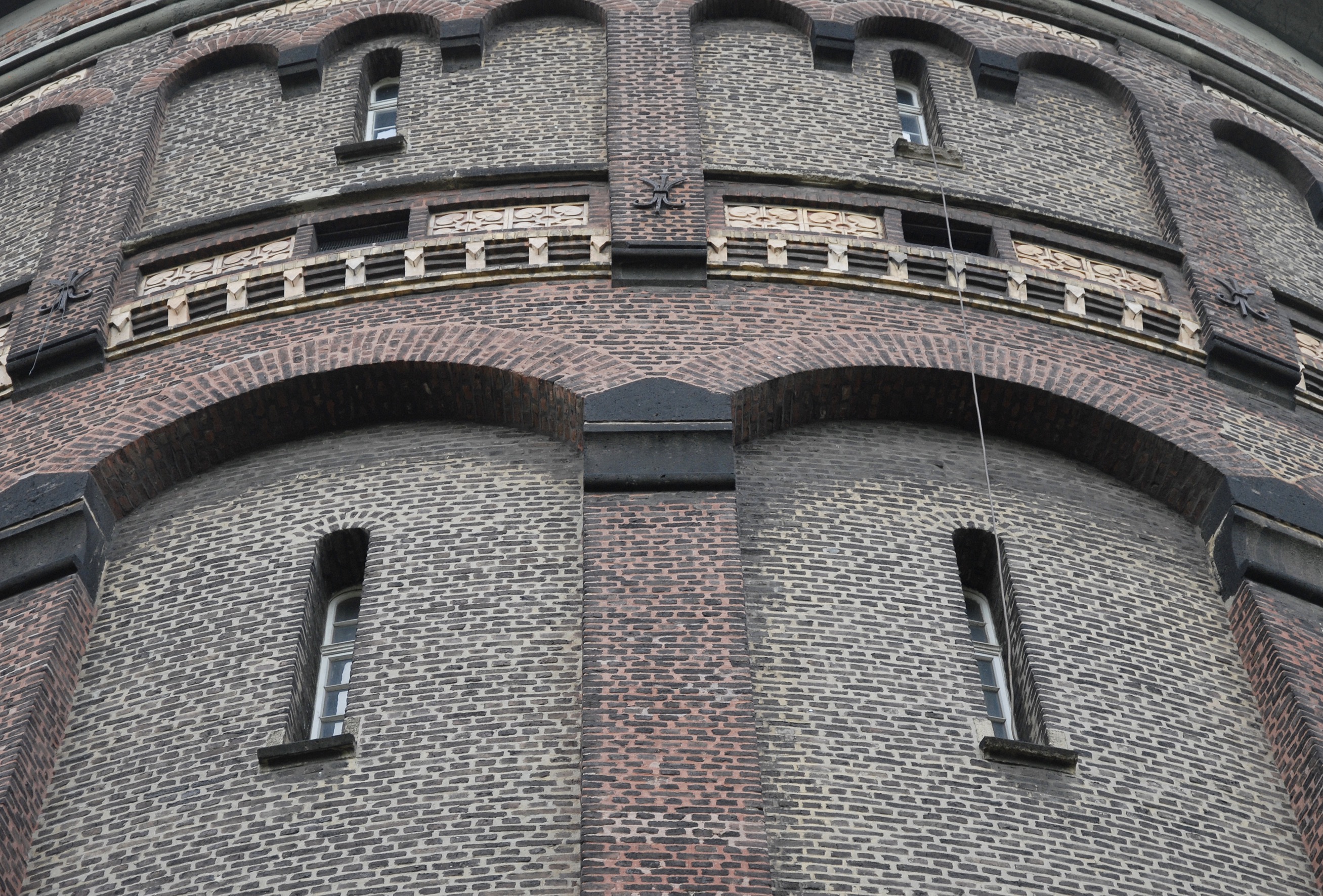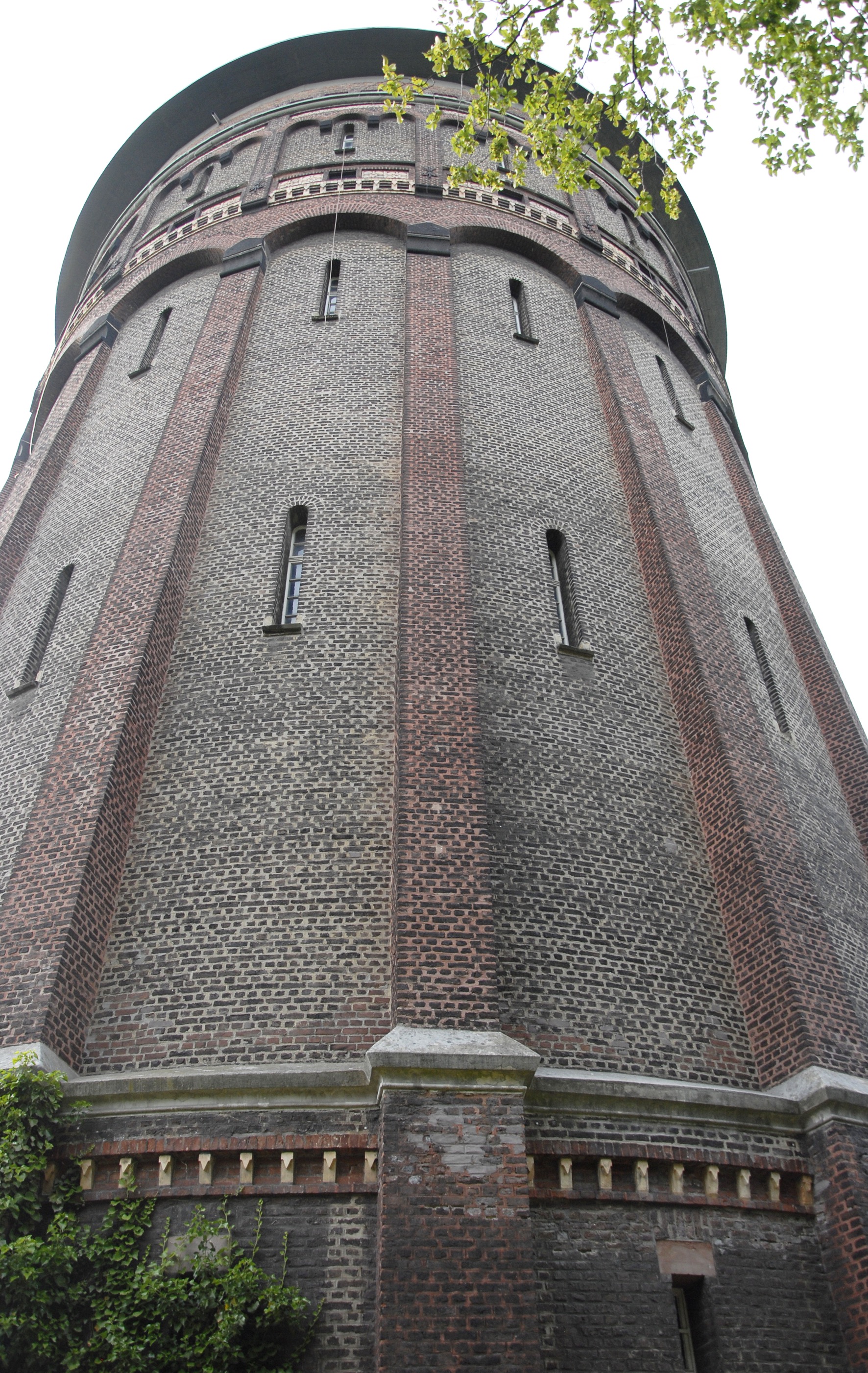 Der Wasserturm Kempener Feld an der heutigen Gutenbergstraße ist ein technisches Bauwerk, das allerdings in seiner ziegelsichtigen Hülle aufwändig geschmückt und prägnant gegliedert ist. Dabei ist der eiserne Flachbodenbehälter, der in 36m Höhe liegt, auch im Äußeren ablesbar: hohe umlaufende Wandpilaster am zylindrischen Turmschaft tragen die Segmentbögen eines leicht vorspringenden Zylinders, der durch schmale Rundbogenfenster durchbrochen ist. Ähnliche Fenster belichten auch die darunterliegenden Ebenen, die aus einem kreuzförmig geteilten Kern und einem Kranz von acht identischen Räumen besteht. In der Ebene des Hochbehälters belichteten die Fenster einen schmalen Umgang, der nur durch einen Steigschacht im Außenmauerwerk zu erreichen war. Hier führt eine schmale Treppe am genieteten Hochbehälter entlang auf einen Steg, von dem aus man in den seinerzeit wassergefüllten, nach oben offenen Behälter blicken konnte. Auch die Leitungen, mit denen das Wasser aus dem Wasserwerk in den Hochbehälter hinaufgefördert wurde und von dort einen gleichbleibenden Wasserdruck für die Haus- und Industriewasserversorgung bereitstellte, sind erhalten. Den Stolz der Krefelder auf diesen technische Bauwerk verdeutlicht bereits der Eingang, der durch einen großen Rundbogen aus gelbem Klinker gerahmt ist und über dem Eingang in einer aufwändigen Steinmetzarbeit das damalige Stadtwappen mit dem Hl. Dionysius zeigt, gerahmt durch Rankenwerk und mit einem Mauerring als Krone.