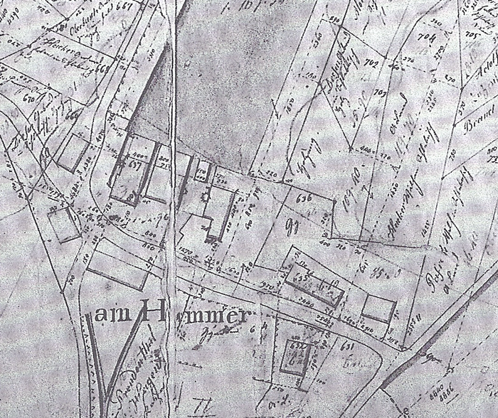 Über den genauen Zeitpunkt der Stauung der Dhünn und der Errichtung des ersten Gewerbebetriebes an der Stelle der späteren Fabrik "H. P. Kuhlmann Söhne" ist nichts bekannt. Der erste schriftliche Beleg stammt aus dem Jahre 1801 und ist eine Eingabe des Mülheimer Kaufmannes Derick van Hees, welcher seinen 1778 konzessionierten Reckhammer in eine Öl-, Gersten-, Holz- und Gipsmühle umwandeln möchte. Das nächste schriftliche Zeugnis, eine Statistik des Herzogtums Berg aus dem Jahr 1817, nennt als neuen Besitzer Johann Caspar Lange aus dem westfälischen Haspe. Zu diesem Zeitpunkt umfasste die Anlage bereits "zwei Hammerwerke mit zwei Feuern und vier Arbeitern", die Rohstahl für Betriebe im Raum Remscheid und Solingen herstellten.