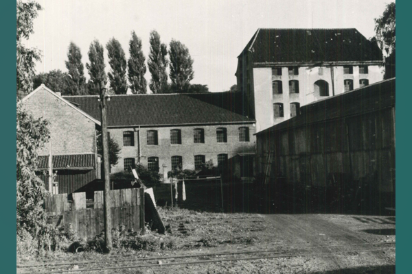 Das wohl von Hausmann 1895 erbaute Mühlen- und Brennereigebäude ist eine zweigeschossige Backsteinanlage mit Hauptflügel direkt am Angerbach und einem rechtwinklig daran angrenzenden, fünfachsigen Seitenbau. Im Giebeldreieck des Hauptbaus prangt noch heute die Inschrift „Auermühle“. Flachsegmentbogige bis stichbogige Fenster, Wandvorlagen und ein Rundbogenfries unter der Inschrift im Hauptgiebel prägen die Architektur der Mühlenanlage. An der Seitenfassade des Hauptbaus war an der Anger auf einer im Flusslauf errichteten Mauer das mit seiner Achse in das Mühlengebäude hineinreichende Mühlenrad aus Stahlblech montiert (nicht erhalten). Der Wasserzufluss konnte über ein dem Wasserrad unmittelbar vorgelagertes, erhaltenes Schütz reguliert werden. Das Schütz wurde von einem hier über den Bachlauf reichenden Steg bedient.