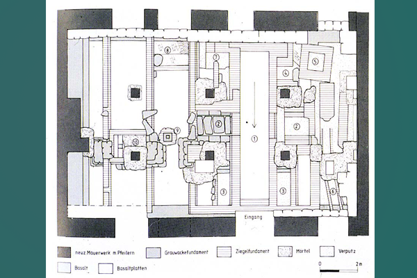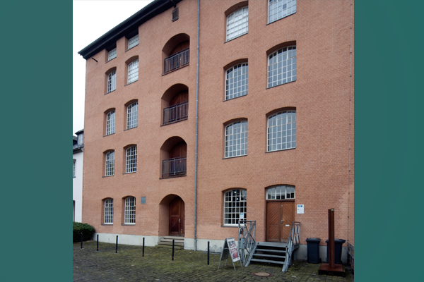 Geht man von der „Alten Fabrik“ durch den Tordurchgang auf den Hof, stößt man auf den zweiten Fabrikbau, die „Hohe Fabrik“.