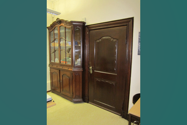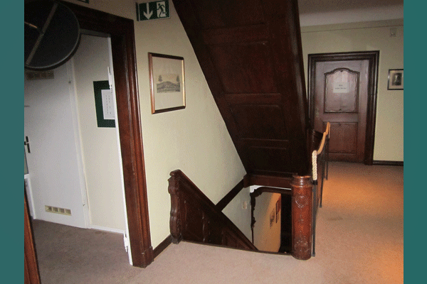 Vom Eingangsbereich her heute nur vom Haus 4 zugänglich ist der Raum direkt rechts hinter der Eingangstür(sog. Biedermeierzimmer). Dieser, über beide Häuser von Diele zu Diele sich erstreckende Raum, könnte früher das gemeinsame Kontor der Gebrüder Hilger gewesen sein. Die Tür zu diesem Raum vom Haus 2 ist im dortigen Eingangsbereich noch vorhanden aber nicht mehr nutzbar. Zwischen Kontor(Biedermeierzimmer) und Küche liegen unbelichtete Räume wohl für die Speise- und Vorratskammern, möglicherweise auch ausgestattet mit einem Speiseaufzug zu dem darüber gelegenen großen Salon(Krielke, 2004, S. 46).
