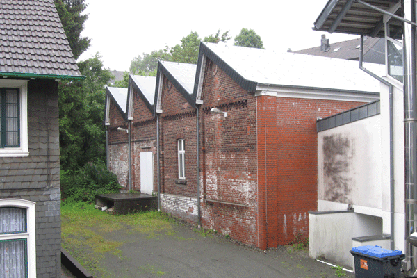 Auch das Kesselhaus wurde zugunsten einer Nutzung als Werkstatt verändert, indem große stichbogige Metallsprossenfenster in die Traufwand eingebaut wurden. Auf der Werkstatthalle sind die vermutlich bauzeitlichen dunkelgrauen Hohlziegel erhalten, während die Dacheindeckung des Haupthauses mit Betondachsteinen erneuert wurde.