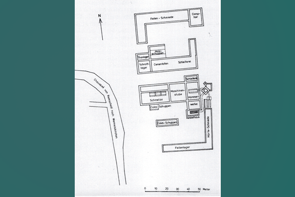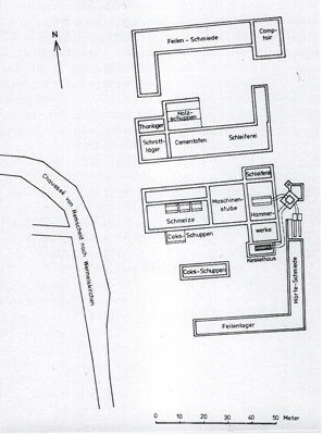 Überall standen im Zentrum der Tiegelstahlfabriken die Schmelzbauten für Zementier- und Tiegelstahl. Der Zementierstahl war das unverzichtbare Ausgangsmaterial. Es konnte zwar auch von anderen Firmen eingekauft werden. Sicherer aber war die Eigenproduktion.