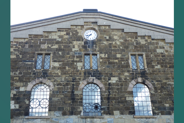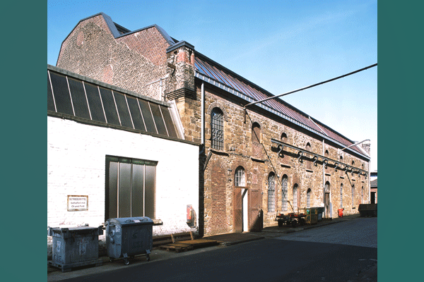 Geprägt wird der Innenraum auch durch die an den drei Haupt-Außenwänden verwendeten Rundbogenöffnungen mit Gusseisenfenstern. An der Westwand sind nachträglich vier Rechtecköffnungen mit Holzfenstern entstanden. Breite vermauerte Öffnungen im unteren Fassadenbereich verweisen auf den hier möglichen Zu- und Abtransport von Koks, Arbeitsmitteln, Asche und Produkten.