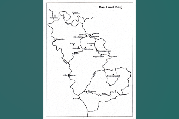 Karte. Rhein, Sieg, Agger, Wupper, Ruhr