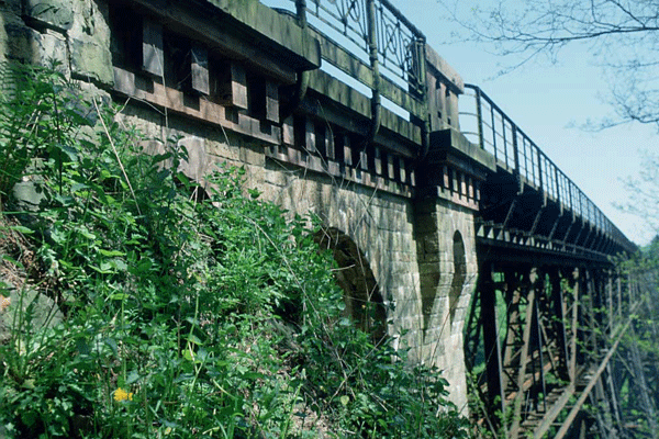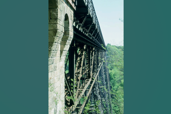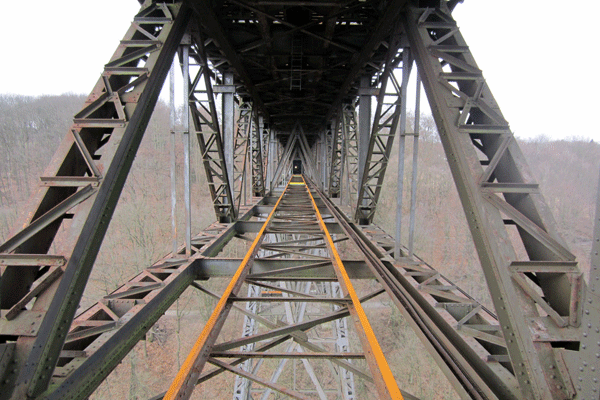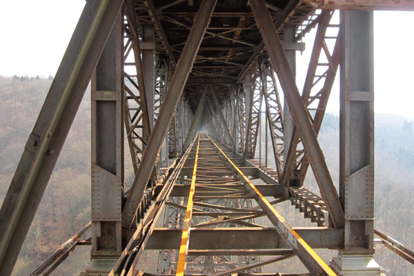 parabelförmige Bogenform der Müngstener Brücke. Foto: 1992