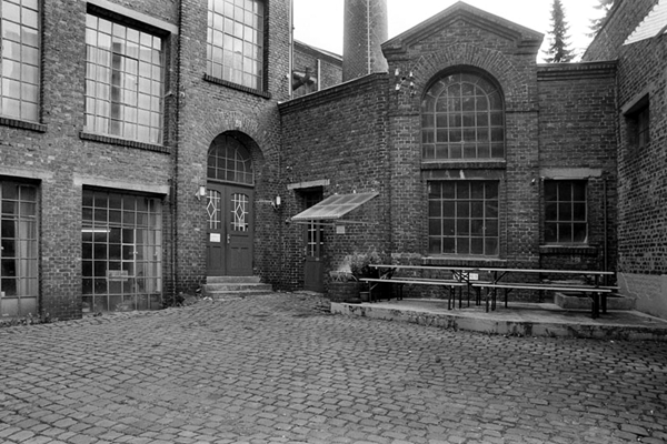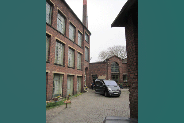 Auf dem hinteren, zur Wupper gelegenen Gelände entstanden von 1909 - 1911 neue Produktionsstätten: zunächst ein zweigeschossiger Betonskelettbau, dann ein vierstöckiges Fabrikgebäude. Das Baujahr 1911 ist im Giebel notiert. Im Winkel zwischen den beiden Gebäuden lagen das Kesselhaus und die Dampfkraftanlage. Mit der Gasdampfmaschine wurde Strom zum Antrieb der Maschinen in den Fabriketagen erzeugt. In der unteren Etage standen die schweren Flechtmaschinen, im ersten und zweiten Obergeschoss lagen die Websäle.